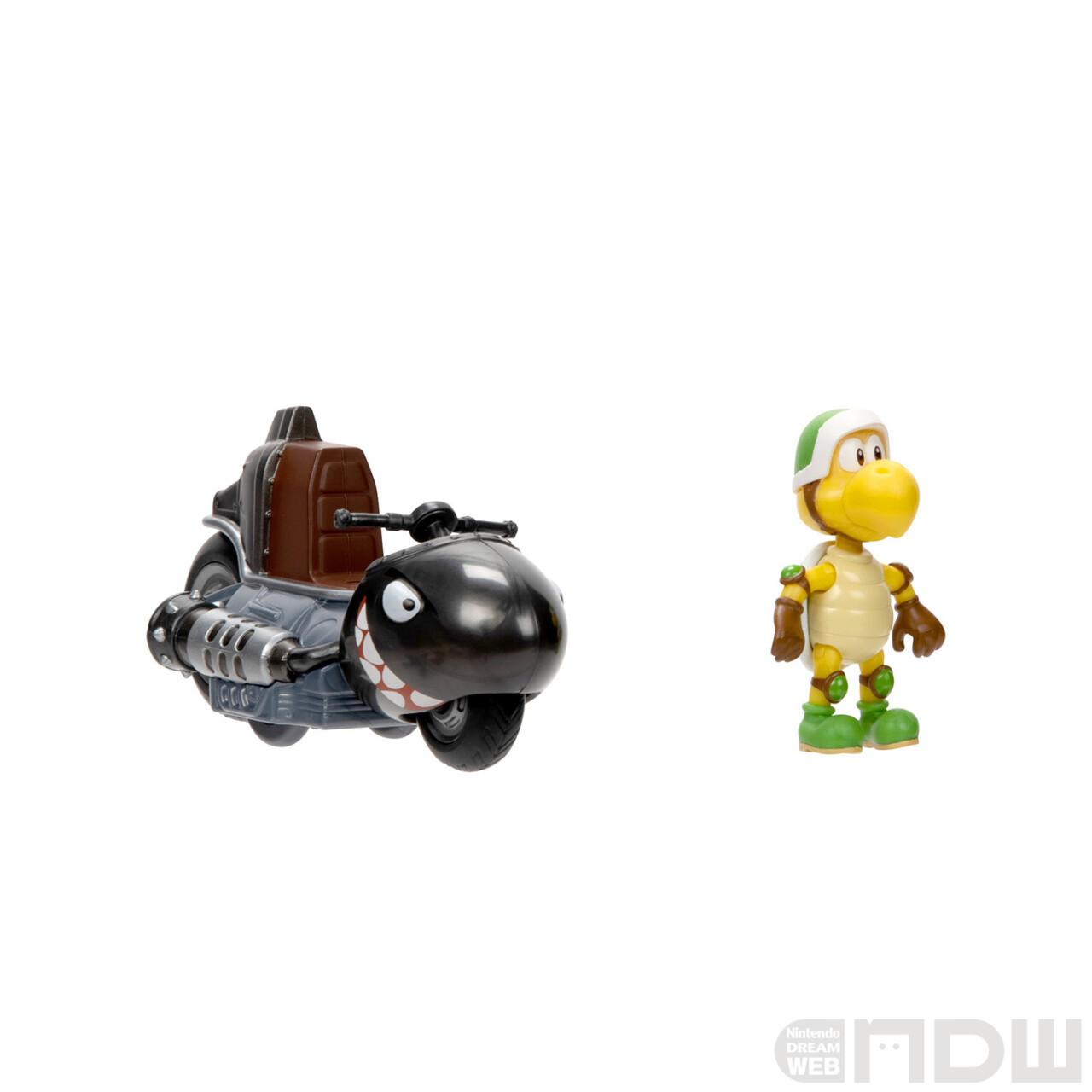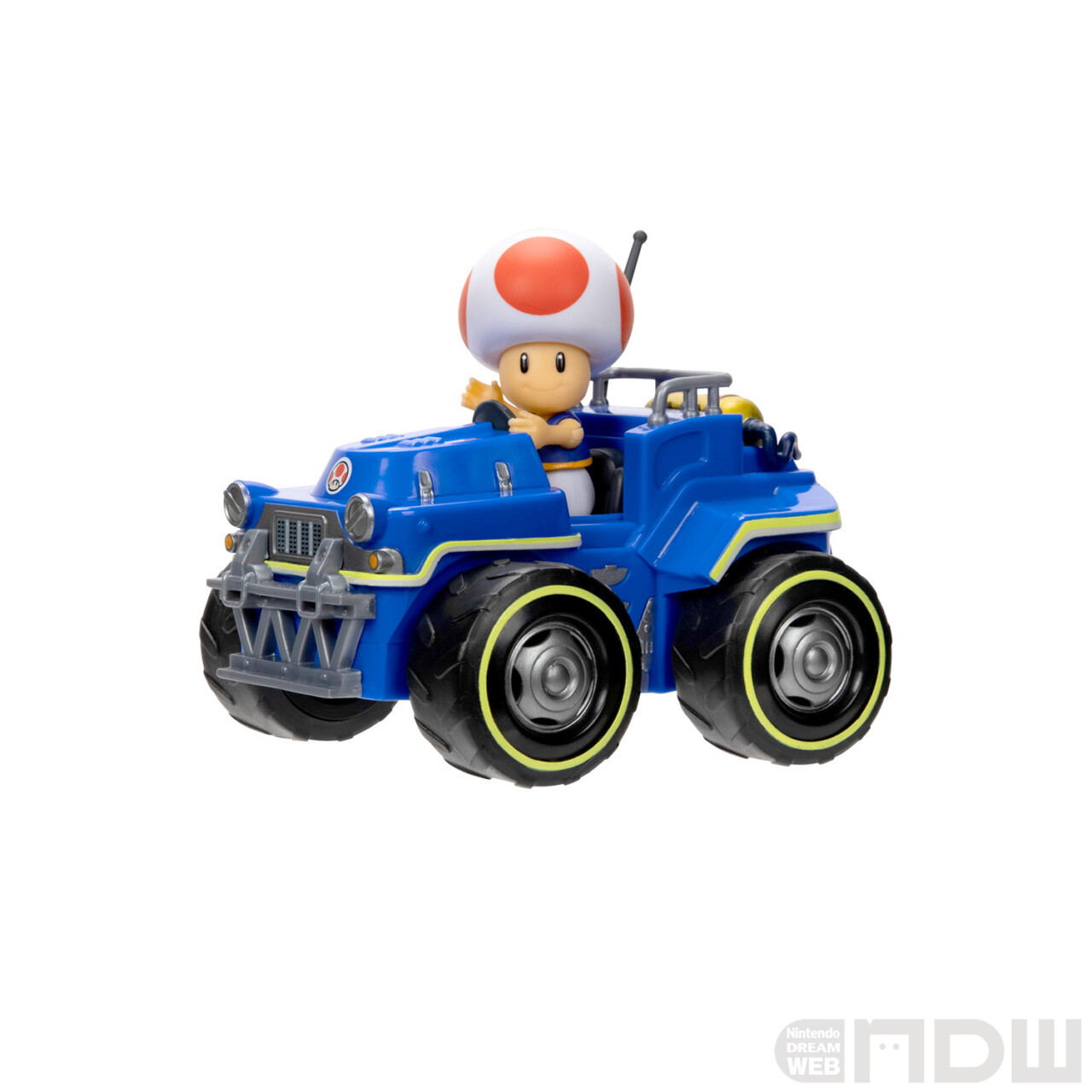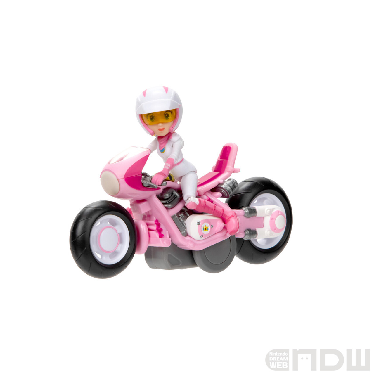 プルバックカートは、マリオ、ピーチ、キノピオ、ノコノコの 4 種。手で後ろに引くと走り出すプルバック仕様で、フィギュアは着脱可能です。カートは映画に登場するオリジナルデザインとなっています。