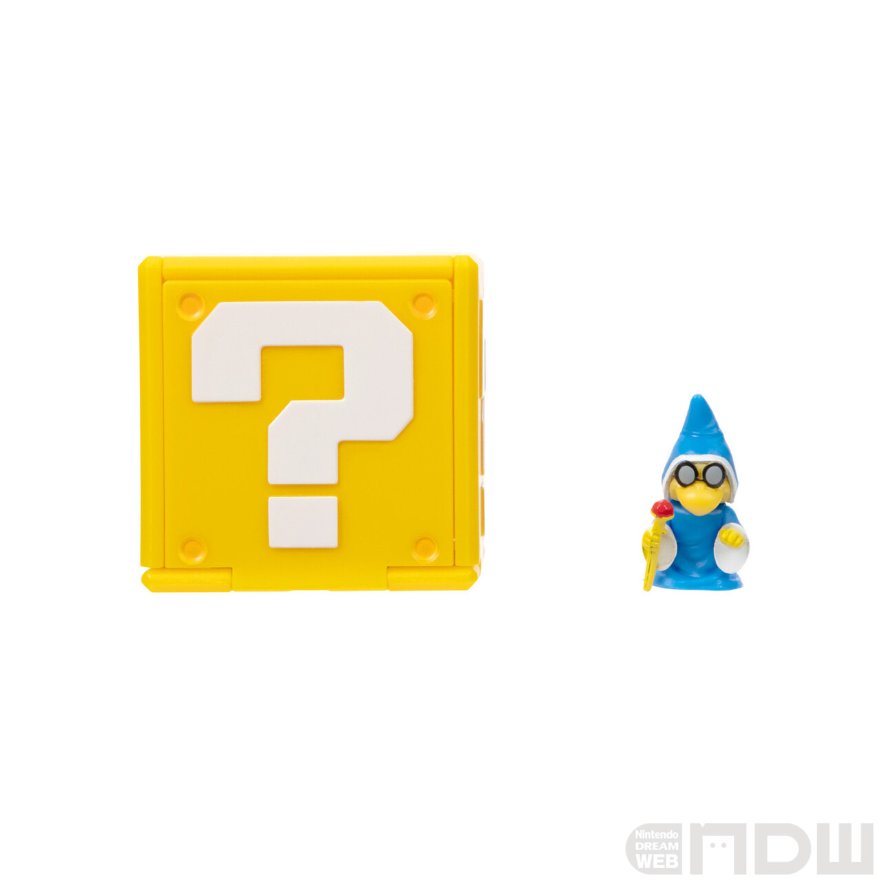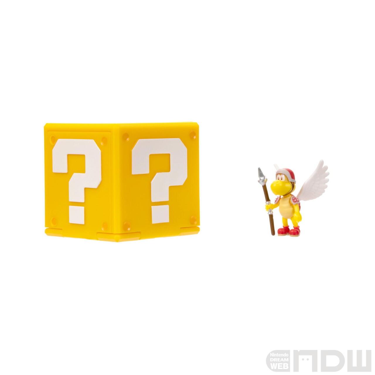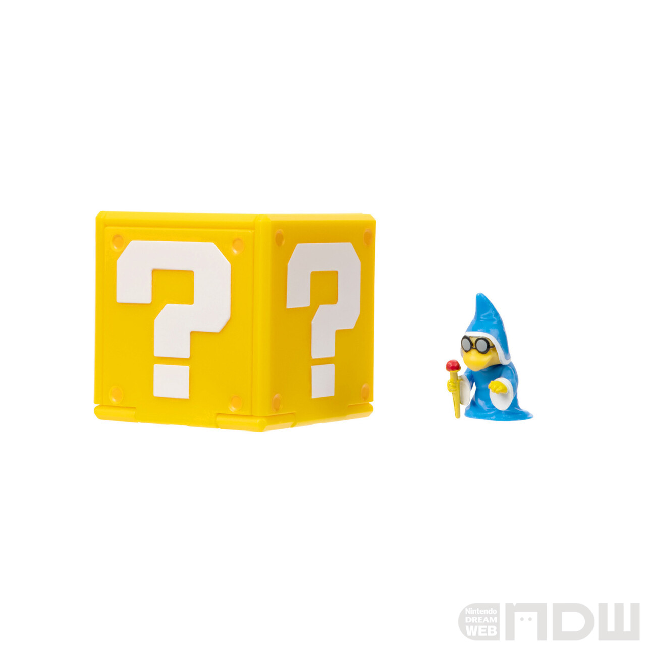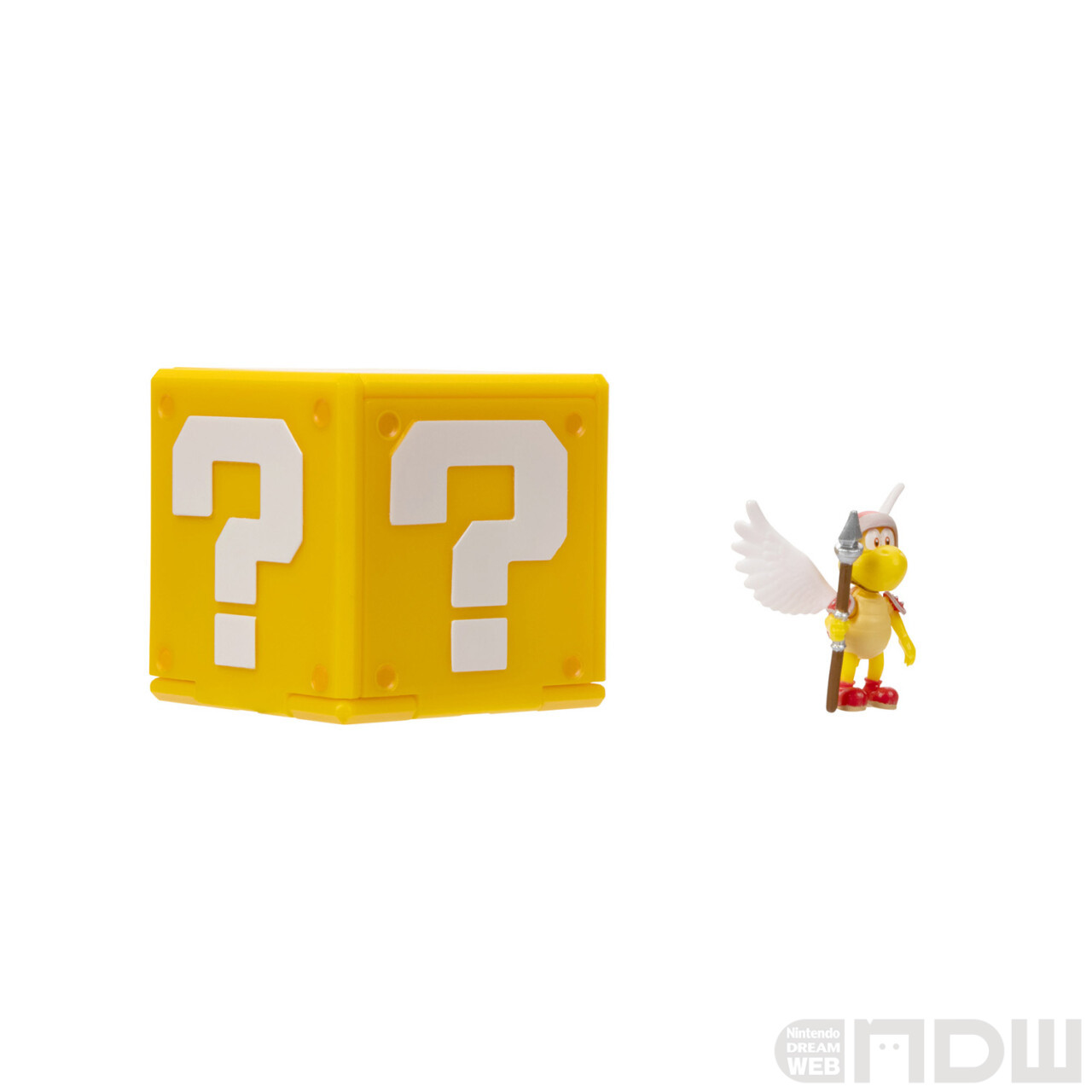 ミニフィギュアは、マリオ、ルイージ、ピーチ、キノピオ、パタパタ、カメックの 6 種。高さ約 3cmと小さなサイズですが、付属のハテナブロックを展開して広げると映画の場面背景が現れ、遊ぶことができます。