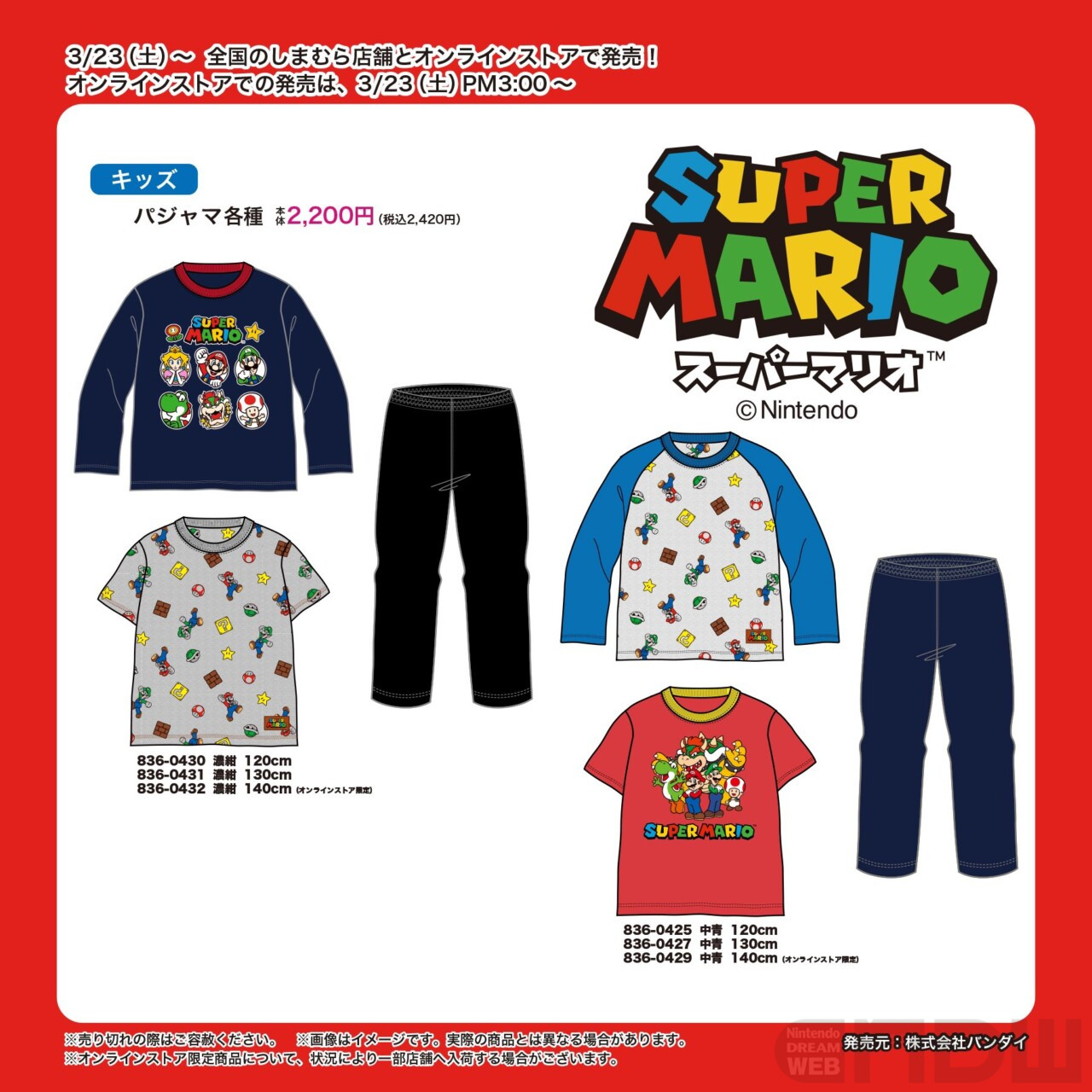 全国のしまむら店舗で、3月23日(土)よりスーパーマリオのTシャツ&キッズ用パジャマが発売!