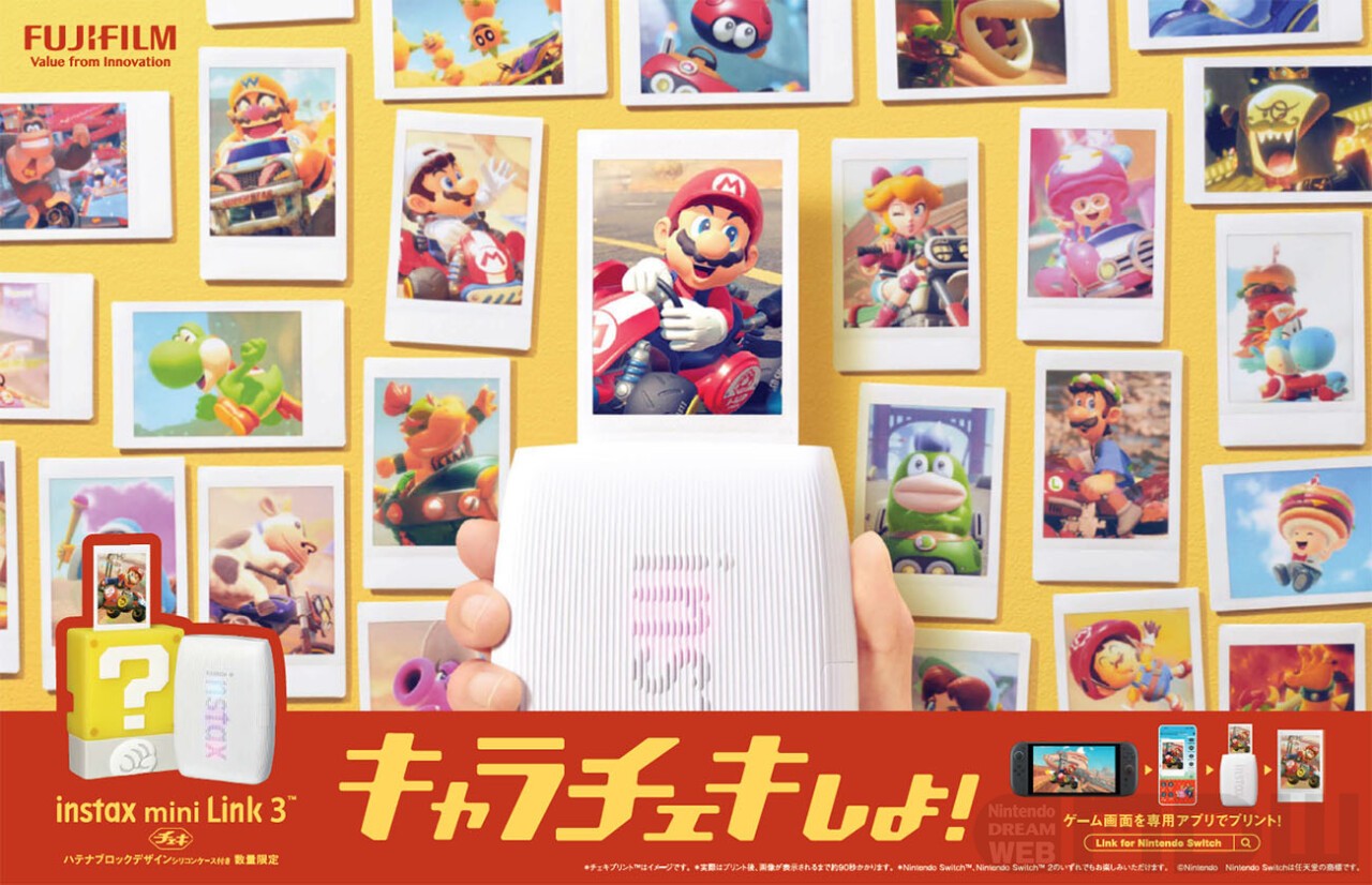 「instax mini Link™ for Nintendo Switch」は、スマホプリンター「mini Link」シリーズと組み合わせて使用することでゲーム画面をプリントできるほか、キャラクターと空間を作り出し、撮影・プリントまでの一連の体験が可能なアプリ。