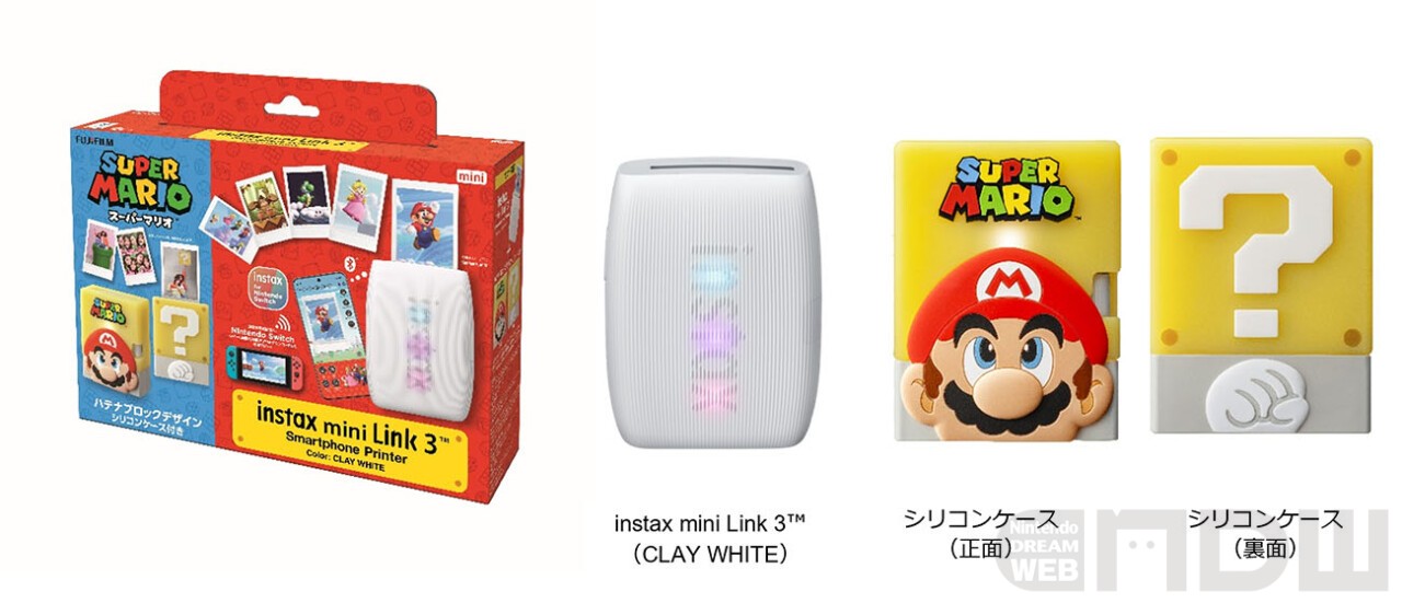 またスマホプリンター「instax mini Link 3™」と「スーパーマリオ」のハテナブロックをデザインしたシリコンケースとのセット品「instax mini Link 3™ ハテナブロックデザインシリコンケース付き」が数量限定で2025年11月7日より発売されます。(オープン価格)