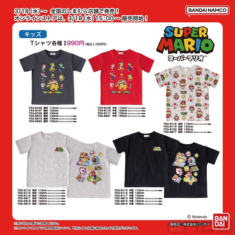 3/18(水)~全国のしまむら店舗で「スーパーマリオ」のキッズ商品が発売!