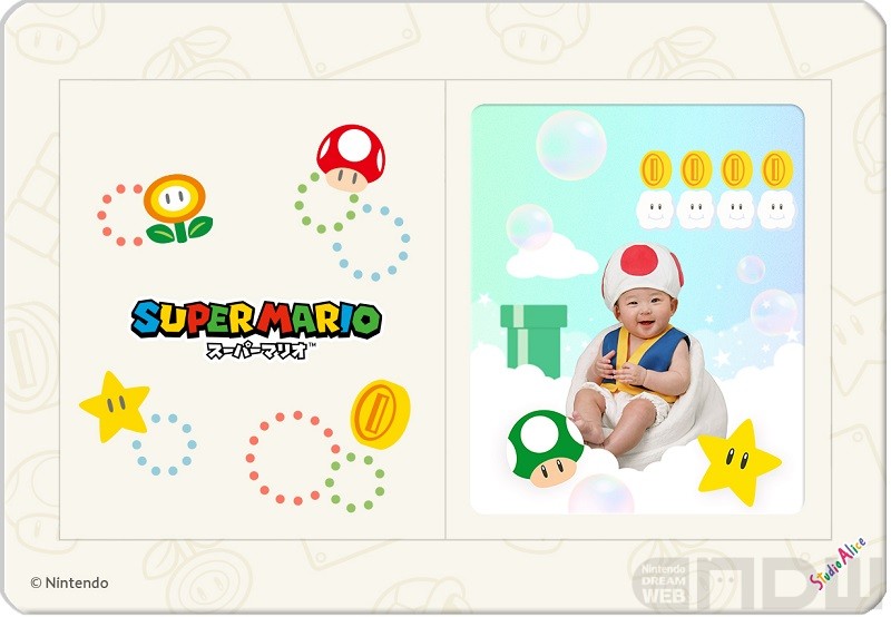 「マイマリオ」をテーマにしたベビィマリオ、ベビィルイージ、キノピオのヘッドコスチュームに加え、雲やシャボン玉のふんわりした世界の撮影を楽しめます。
