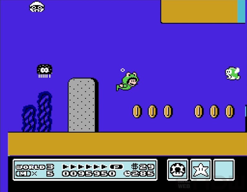 『スーパーマリオブラザーズ3』などに登場するパワーアップ。水中をすばやく泳げるスーツですが、トレーラーではキックで巨大プクプクを倒していますね。