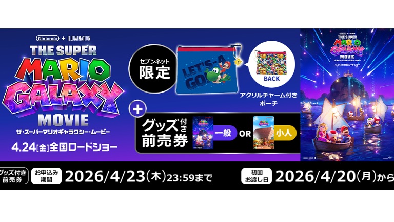 • セブンネットにて、映画『ザ・スーパーマリオギャラクシー・ムービー』のポーチ付きムビチケカード型前売券が予約受付中