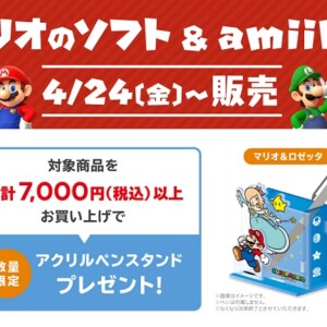 映画公開日である4月24日(金)より、イオンシネマ(一部劇場を除く)にてマリオのソフトとamiiboの販売が決定。対象商品を合計で7,000円(税込)以上購入...