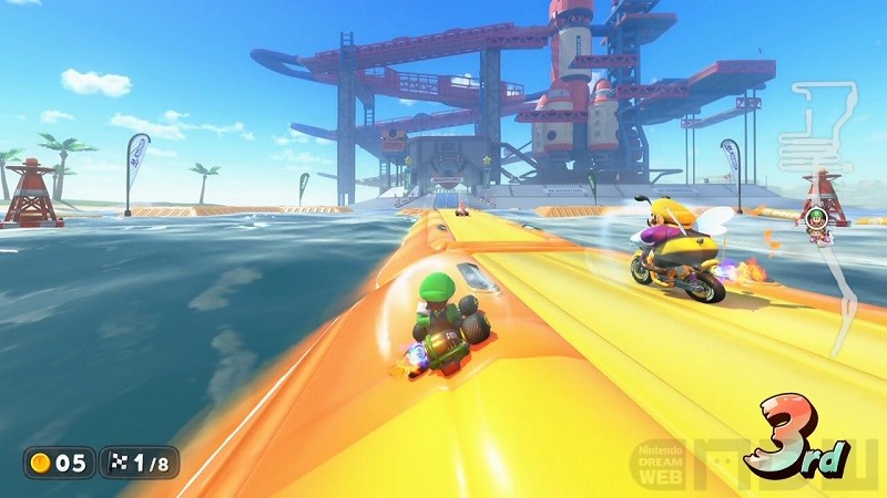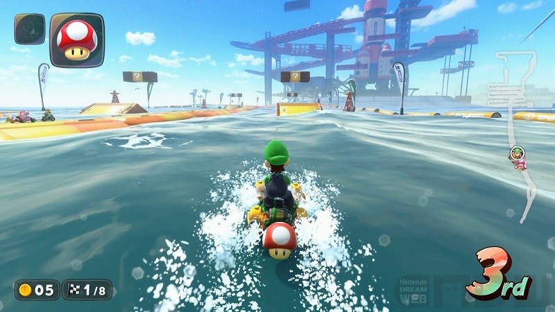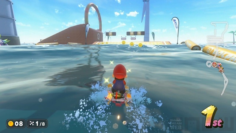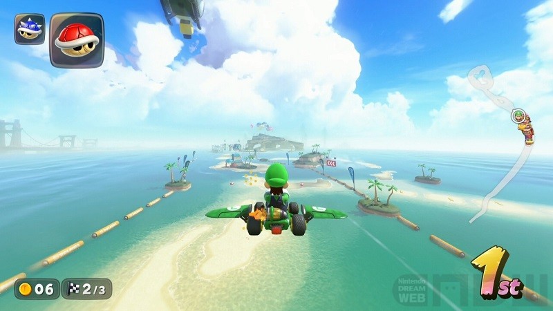 更新データVer.1.4.0でコースレイアウトが変更されたのは、主に「ノコノコビーチ」とほかのコースを繋ぐ海上部分。