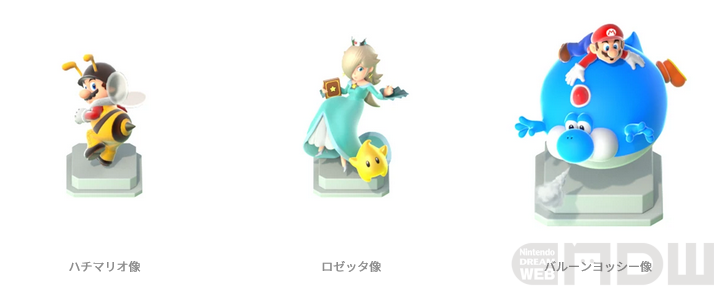 手に入る像は、『スーパーマリオギャラクシー + スーパーマリオギャラクシー 2』に登場する「ハチマリオ像」「ロゼッタ像」「バルーンヨッシー像」、そしてそのゴールバージョンの像。いずれもこのイベントでしか手に入らない像なので、期間中にゲットしましょう!