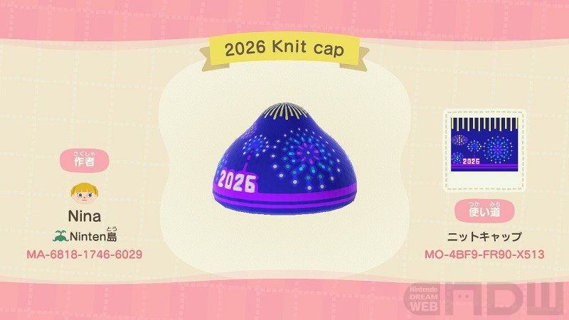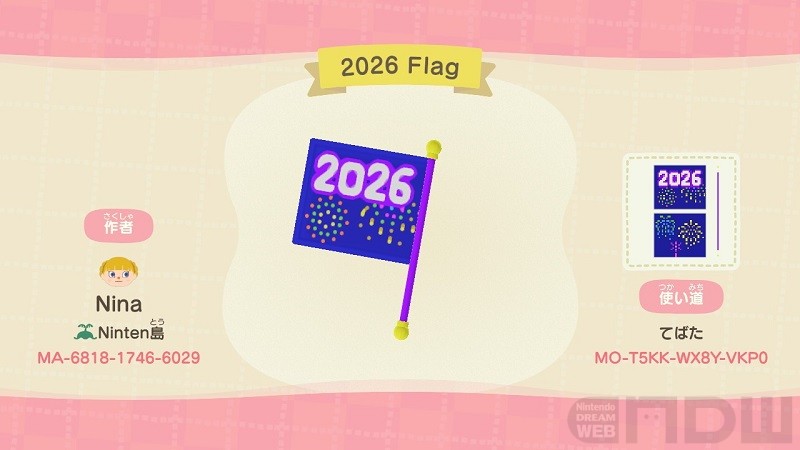 任天堂公式の島「Ninten島」では、2026年のニューイヤーにピッタリな3種のデザインを配布中。