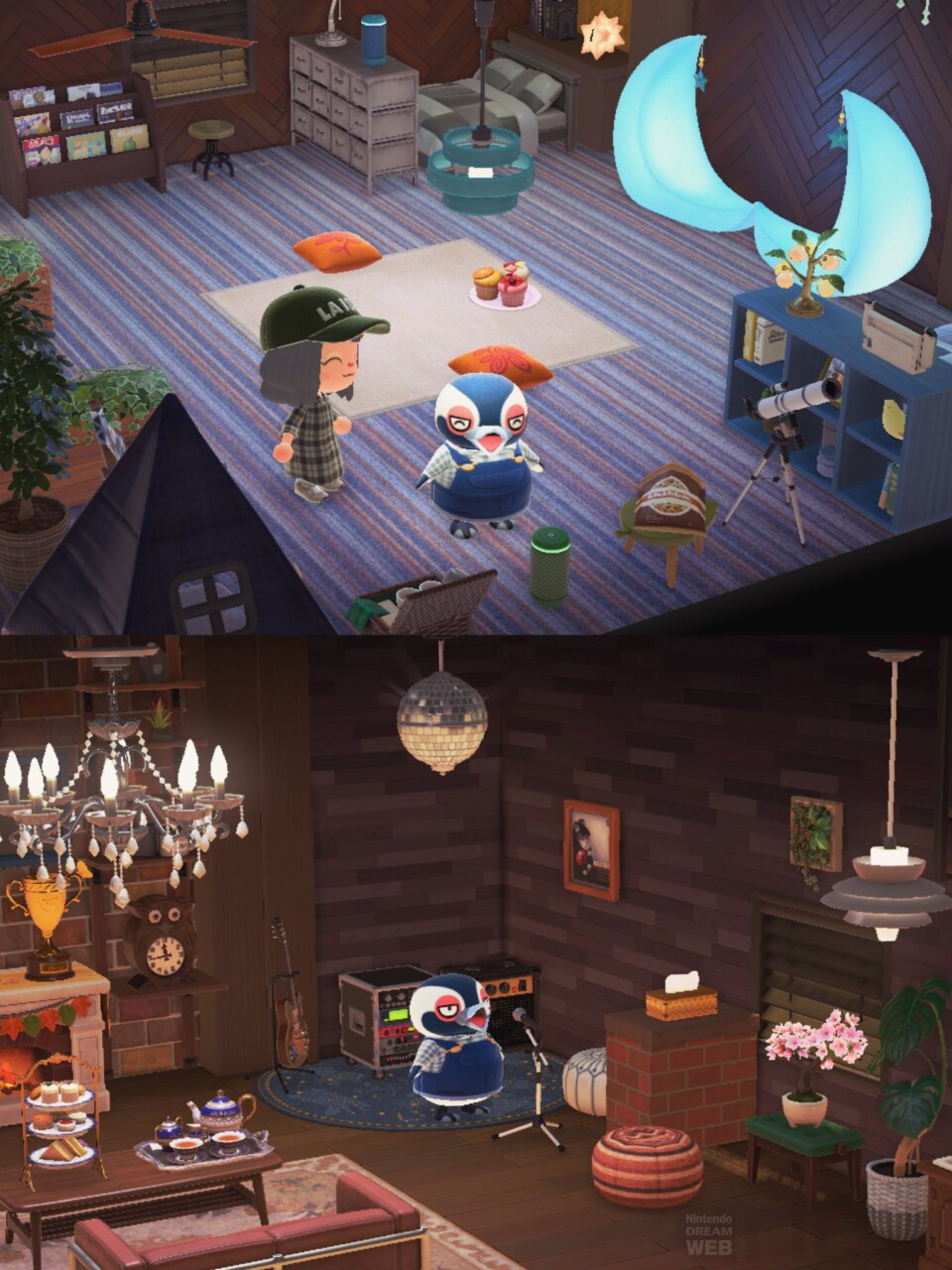 島ではカラフルポップなお部屋で過ごすパッチ。別荘は嗜好を変えて、落ち着いた雰囲気のお部屋をプレゼント♡ 机の上のミルクとホットケーキがかわいいっ!