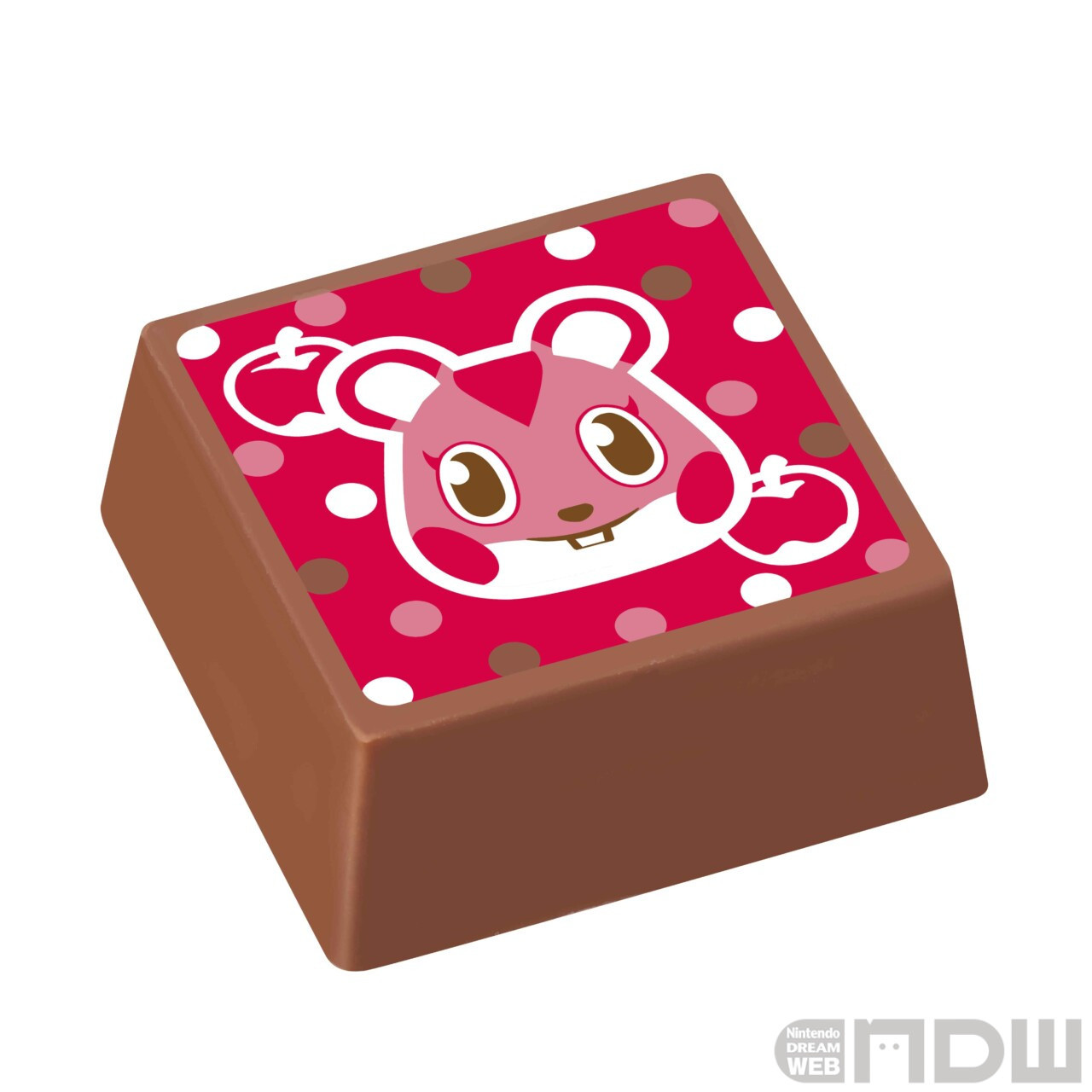 たぬきち、しずえ、まめきち&つぶきちをデザインしたカレタイプのチョコレートと、ゲーム中に登場する葉っぱ、ハート形のアイテム、ナシをモチーフにしたチョコレート合計6粒を、ゴディバの2024年バレンタインのテーマである、フルーツバスケットを描いたオリジナルデザインのボックスに詰め合わせしたもの。