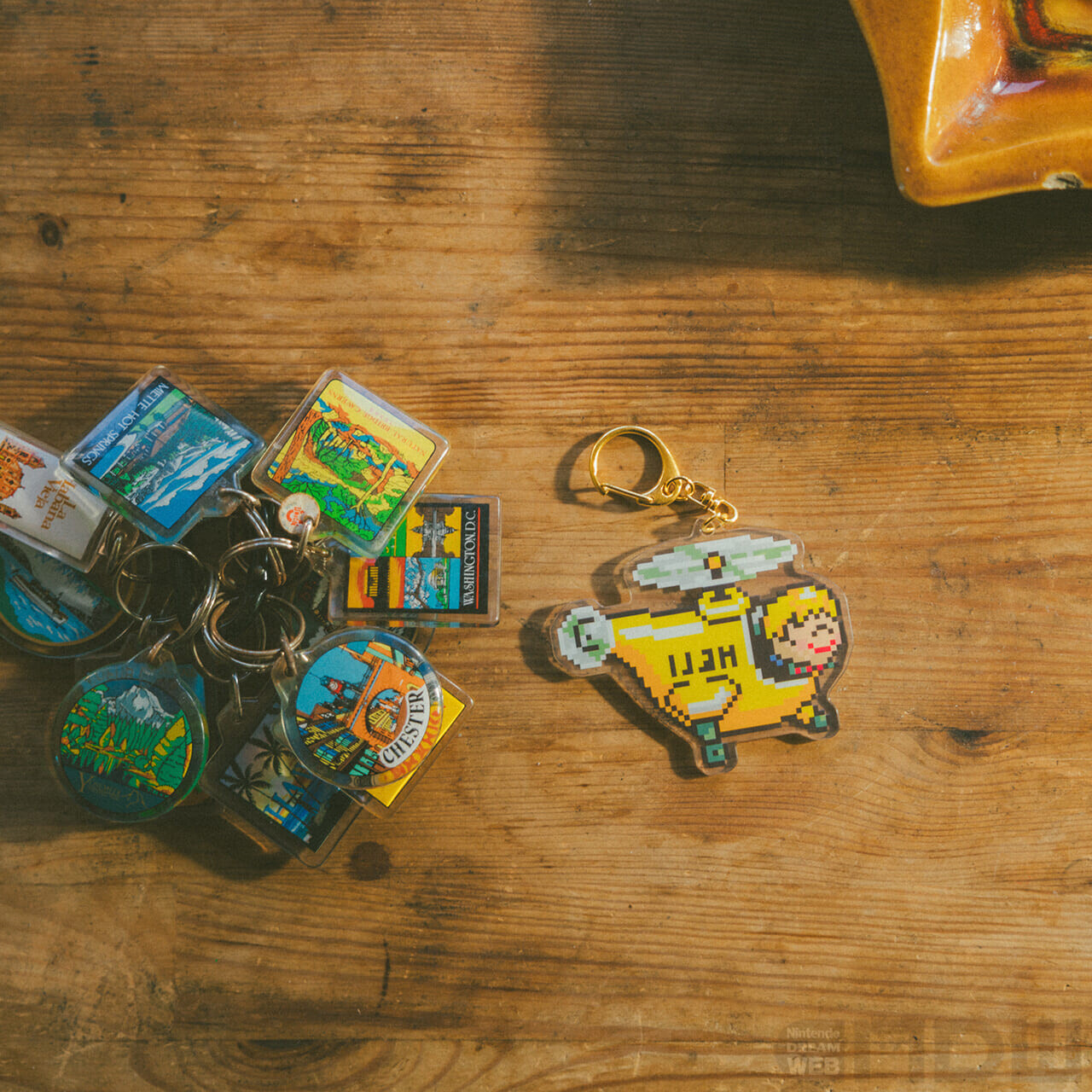 隕石の落下現場に向かうネスとポーキーとチビがセットになったダイカットの3連アクリルキーホルダーです。リングから取りはずすとチャームになるので、ファスナーや他のキーホルダーにつけて飾るのもかわいいです。
