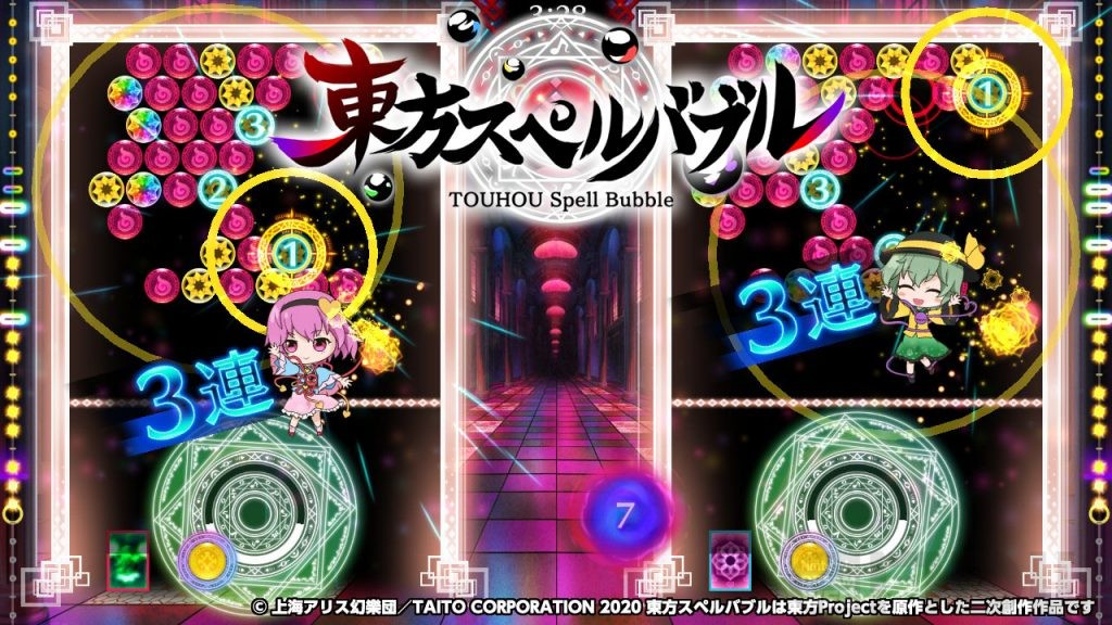 タイトーのバブルシューティングがリズムアクションと融合、さらに東方Projectの二次創作で爽快な対戦パズルに! 初音源化:「バブルの呪文はシュー!ポッ!プッシュ!」「ピュアヒューリーズ-YS MIX-」の2曲を収録。「バブルの呪文はシュー!ポッ!プッシュ!」は、「恋色マスタースパーク」をアレンジした霧雨魔理沙(CV:大空直美)ちゃんのボーカル入りテーマソング! ZUNTATA下田祐さんによる「ピュアヒューリーズ」UKロック風アレンジは、古くからのゲームミュージックファンにもたまらない…!