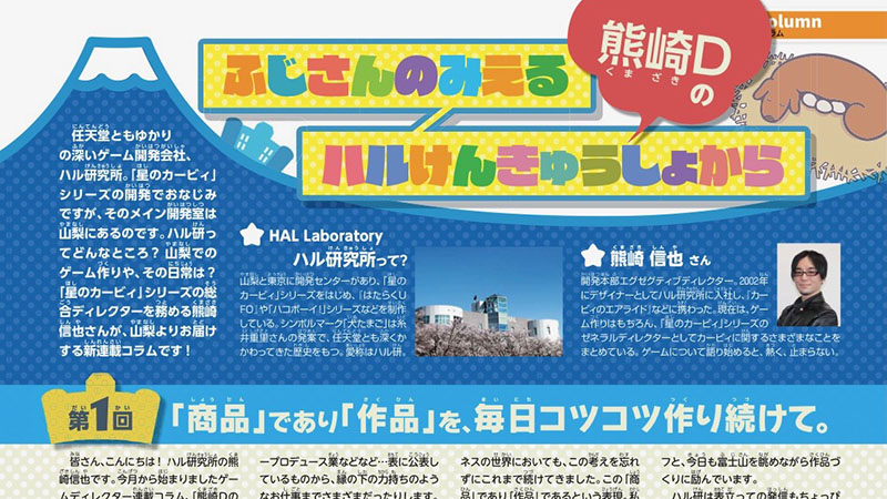 ハル研究所で『星のカービィ』シリーズの総合ディレクターを務める熊崎信也さんが、山梨よりお届けします!