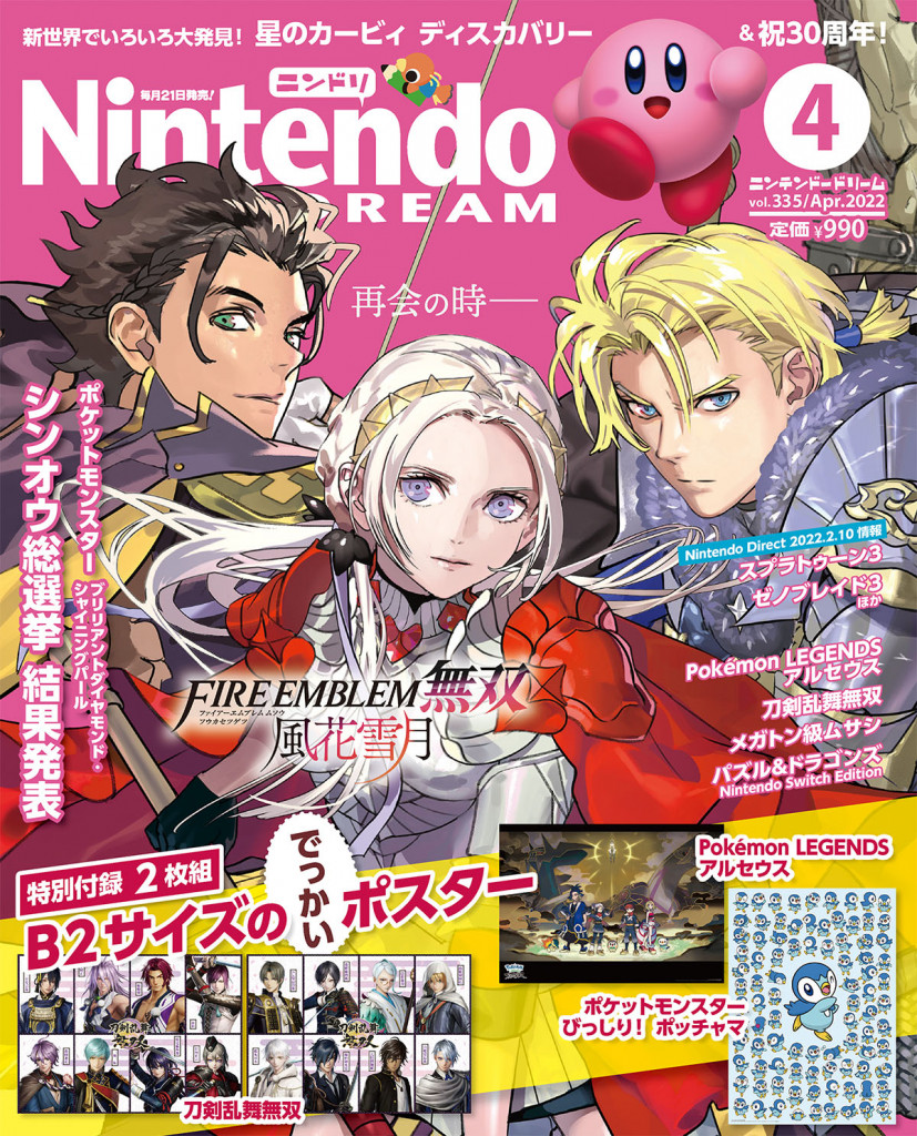 ニンテンドードリーム 22年4月号:Pokémon LEGENDS アルセウス、ポッチャマ、刀剣乱舞無双のポスターが付録!