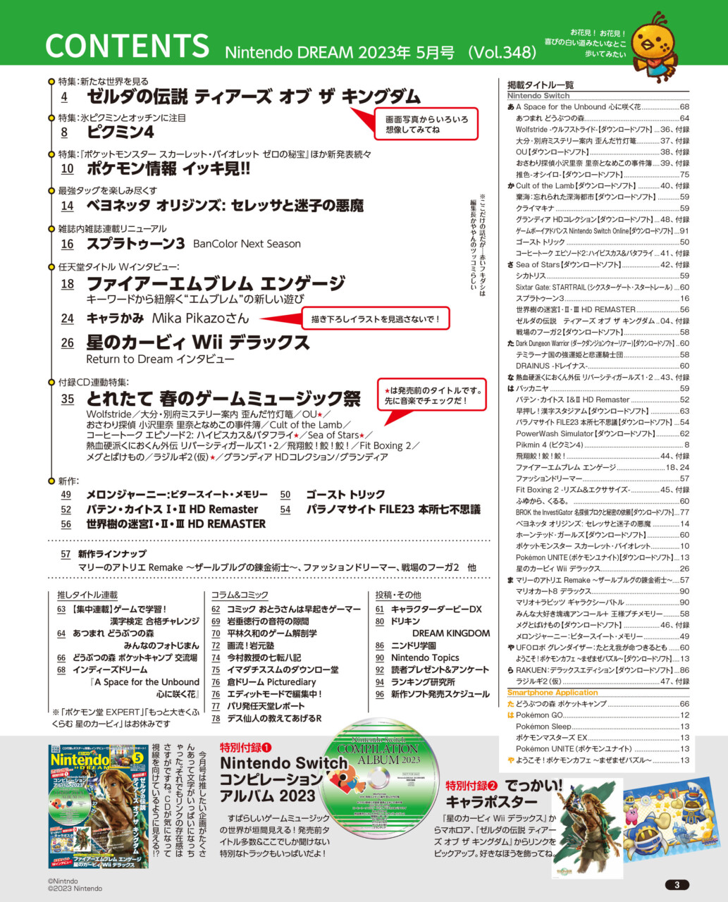 ニンテンドードリーム 23年5月号:豪華CD付録!!ゼルダ&カービィ両面ポスターも