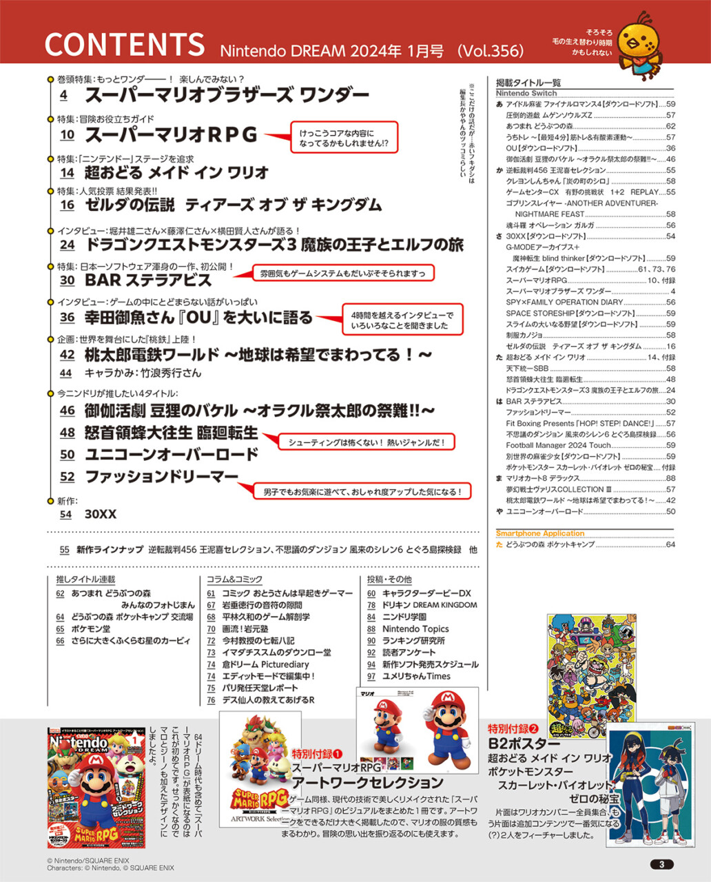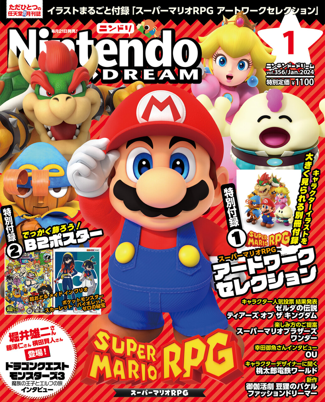ニンテンドードリーム 24年1月号:付録はマリオRPGアートワーク冊子、超おどるワリオ/ポケモンS・V ゼロの秘宝のポスター