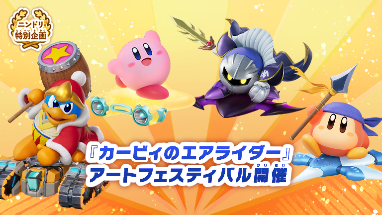 ライダーやエアライドマシン、レース中の風景、シティトライアルのワンシーン…など、テーマは自由! あなたの思う『カービィのエアライダー』をイラストで表現してみてくださいね。たくさんの投稿、お待ちしています!