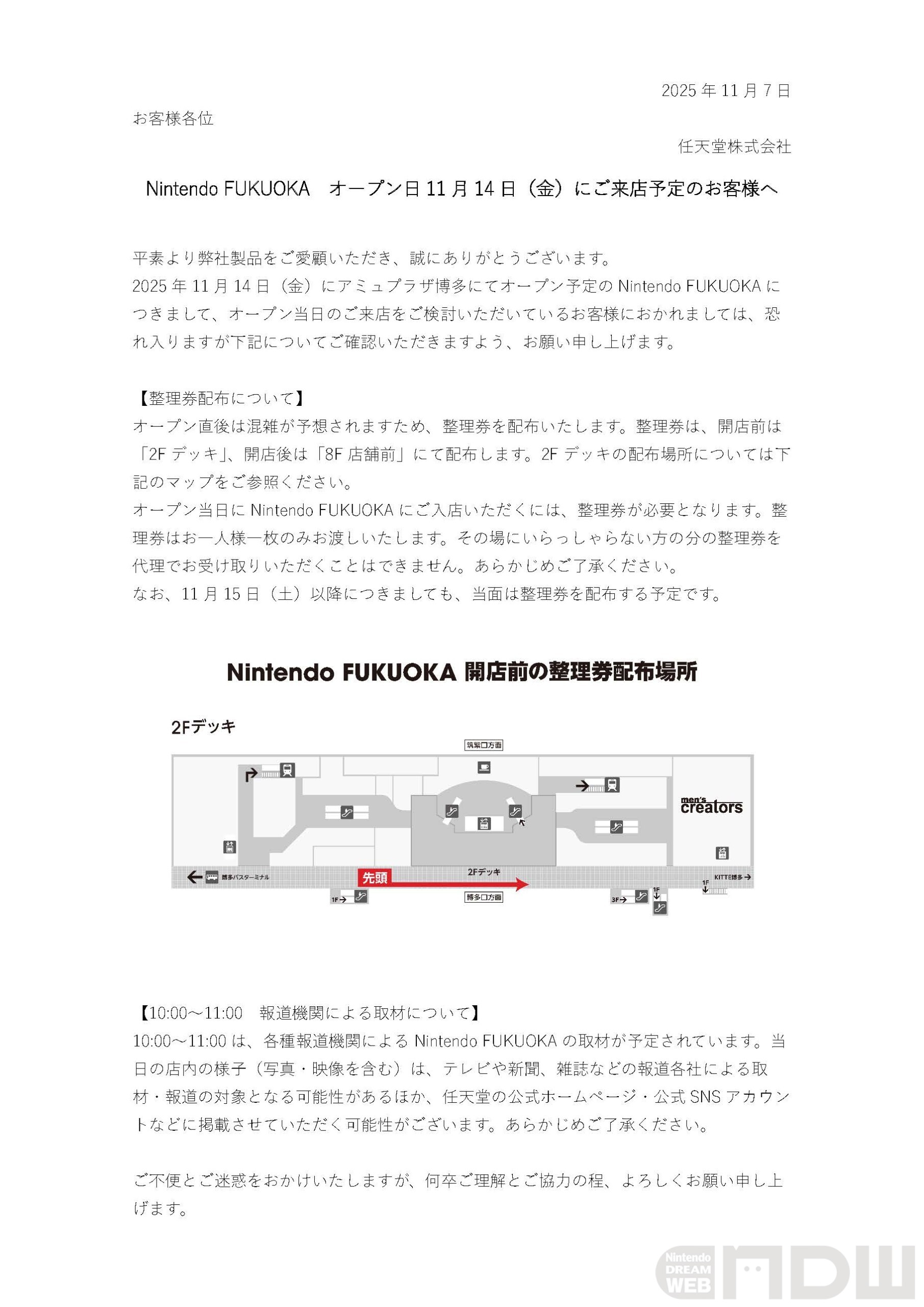 「Nintendo FUKUOKA」のオープン日、2025年11月14日より