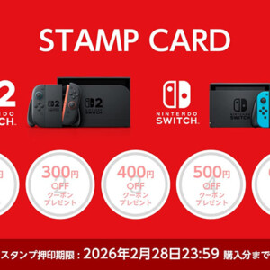 Amazon.co.jpは、Nintendo SwitchとNintendo Switch 2の関連商品を購入することでクーポンコードがもらえる「Switch | Switch2 STAMP CARD」を期間限定で実施しています。