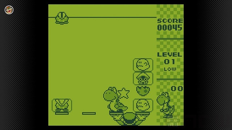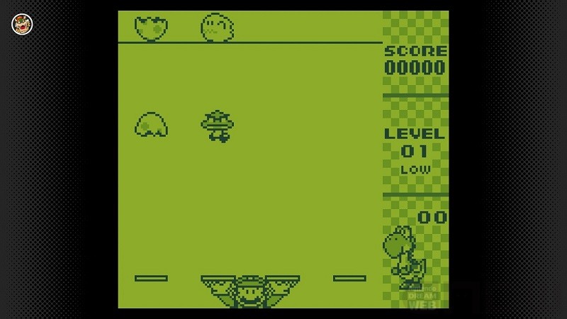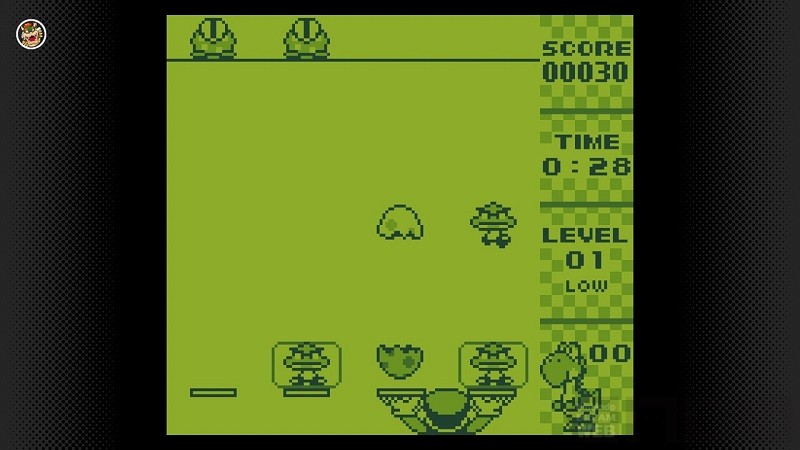 1991年に発売された、アクションパズルゲーム。画面の下にいるマリオを動かし、上から落ちてくるキャラクターをうまくトレーに振り分け、上下に2つ重ねて消していきます。「したたまご」の上に「うえたまご」を重ねると、中からヨッシーが生まれ、高いスコアが獲得できます。