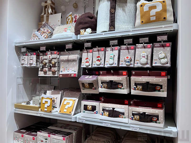 売り場では、人気タイトルのグッズやゲーム関連商品が数多く陳列。また、新登場の『マリオカート ワールド』、「スーパーマリオ ウィンターコレクション」のグッズ もディスプレイされていました。店内を眺めているだけでも、任天堂グッズの豊富さに圧倒されます!
