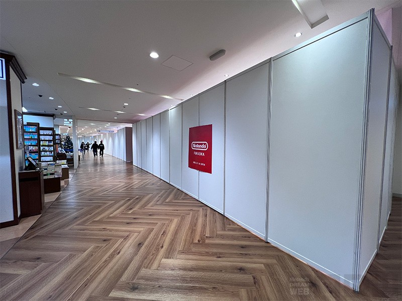 ちなみに、オープン前日のようすがこちら。長距離にわたって白い壁に覆われ、いかに「Nintendo FUKUOKA」が広いかが伝わるかと思います。