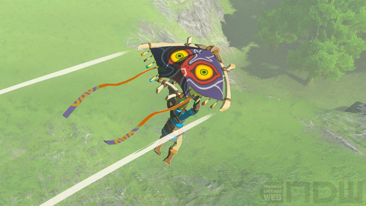 そしてリンクが操っている謎の乗り物群。車のように走ったり、空を飛んでいたり。下記のゲーム画面にあるようにパーツを(緑色の光の力?)拾ってDIYみたいなことでもするんでしょうか? それとも変形するんでしょうか? と、まだまだ謎に包まれていますが、とにかく多彩な移動手段が今回も用意されているようですね。