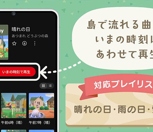 「Nintendo Music」『あつ森』の曲を今の時刻にあわせて再生できるように