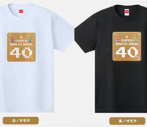 「スーパーマリオブラザーズ40周年」のロゴをあしらった特別デザインのTシャツが発売