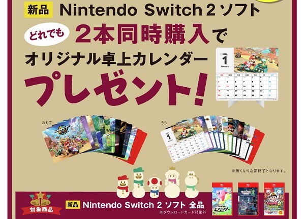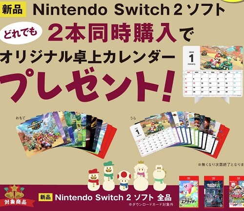 ゲオにて、Nintendo Switch 2 ソフト2本購入で卓上カレンダーがもらえるキャンペーンが12月1日より開始
