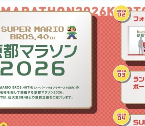 「SUPER MARIO BROS. 40TH京都マラソン2026」の名称で開催される、京都マラソン。公式プログラムが配布に。任天堂の協賛企画を紹介す...