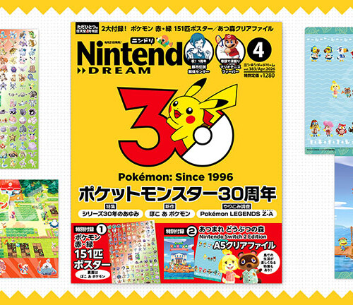 ニンテンドードリーム 26年4月号:付録は『ポケットモンスター 赤・緑』151匹ポスター&『ぽこ あ ポケモン』/『あつまれ どうぶつの森 Nintendo Switch 2 Edition』A5クリアファイル