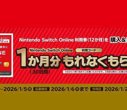 2025年12月23日より、ファミリーマート各店舗にて「Nintendo Switch Online利用券(12か月券)」を購入してキャンペーンサイト...