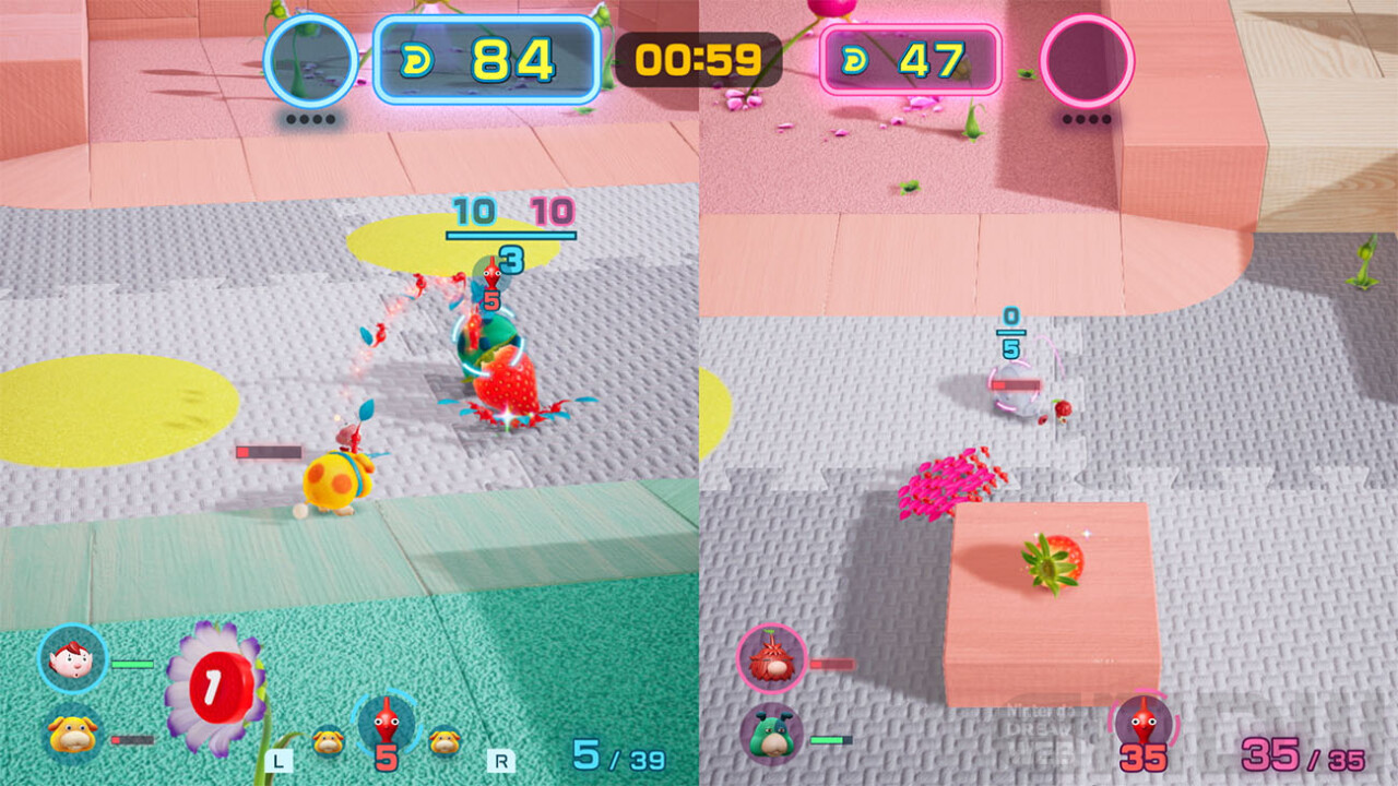 葉っぱの生えた何者かは遭難者を連れ去ることもあるようで、遭難者をかけてダンドリバトルをすることになるようです。ダンドリバトルはピクミンやオッチンにダンドリよく指示を出して、制限時間内に相手よりも多くの物を運べば勝利となります。