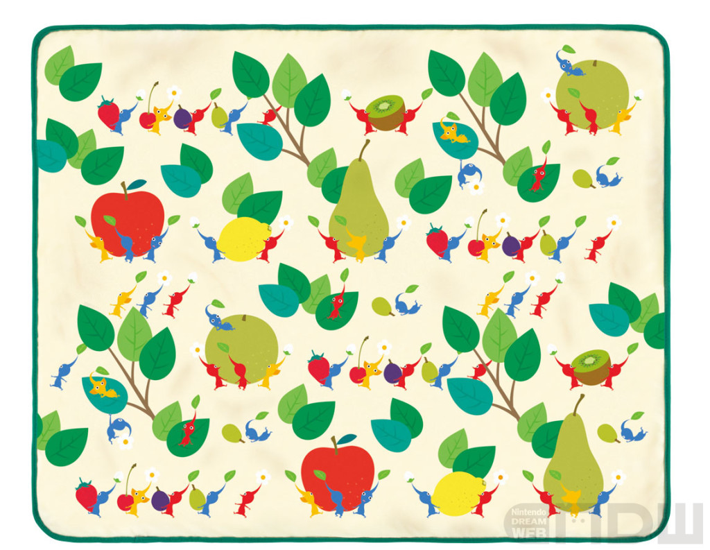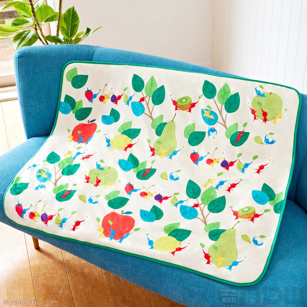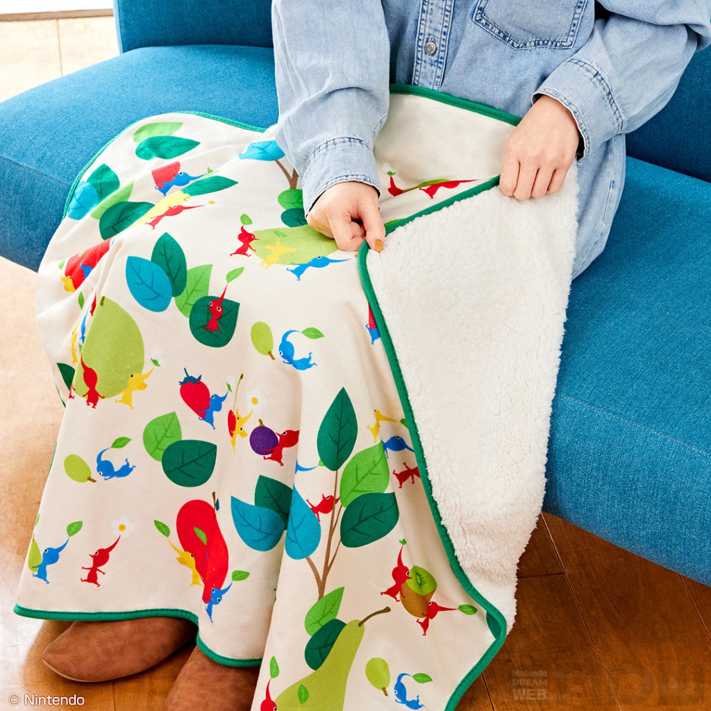 果実をせっせと運ぶピクミンたちが全面にデザインされたブランケットです。たまに座ったり寝転んでリラックスしていたり、転んだり葉っぱから落ちそうになっているピクミンが居たりなど、色々な姿が見られます♪ 裏側はモコモコ素材になっているので、肌寒い時に大活躍してくれます!