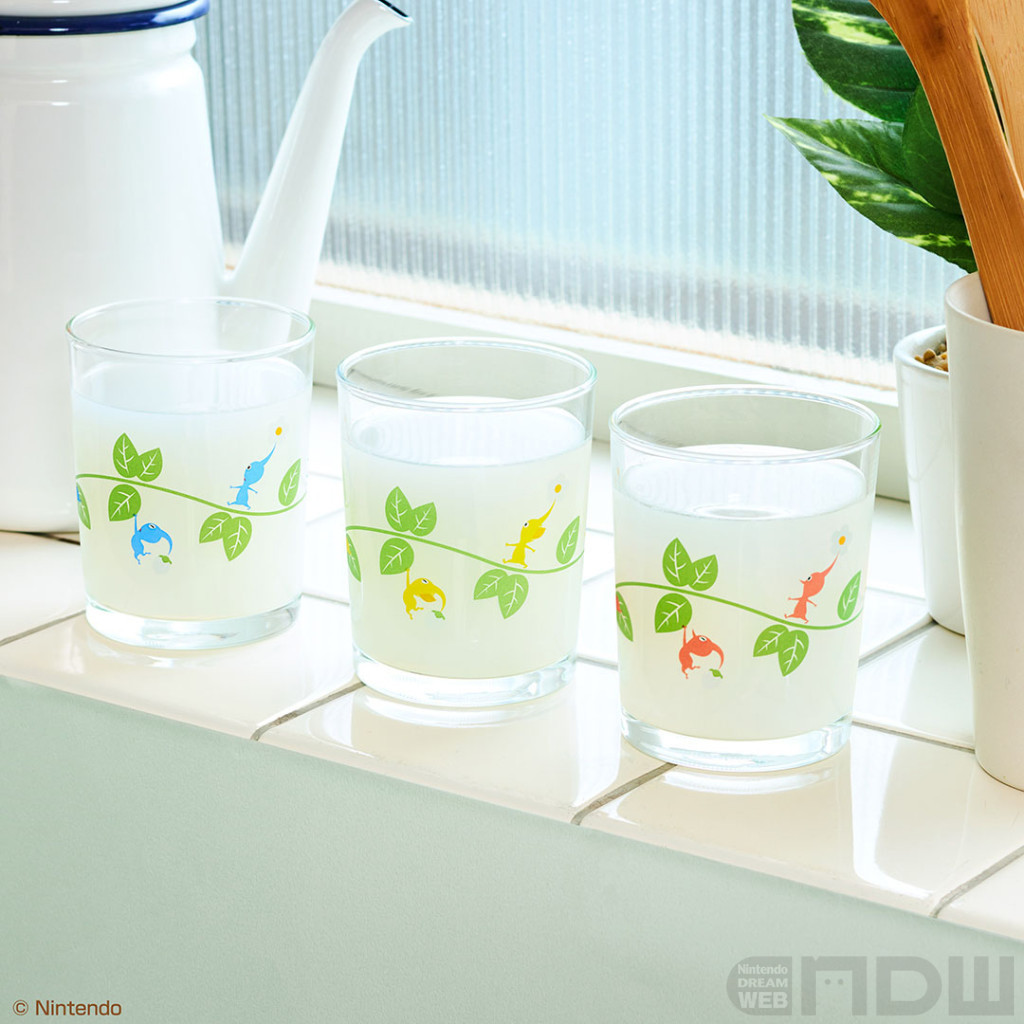 青ピクミン、黄ピクミン、赤ピクミンがそれぞれデザインされた、全3種のグラスです。ぐるりと一周にデザインが入っているので、どの面を向けて置いてもピクミンの姿が楽しめます☆ 3種揃えて使っていただくのもオススメです!