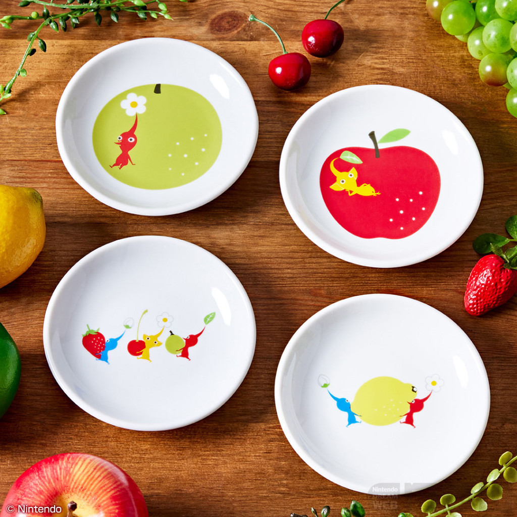 果実の上でピクミンがくつろいでいたり、せっせと果実を運ぶ姿のピクミンがデザインされた、陶磁器製の小皿全4種です。フルーツやちょっとしたお菓子などをお皿に載せて、ピクミンとのおやつタイムを楽しみませんか?