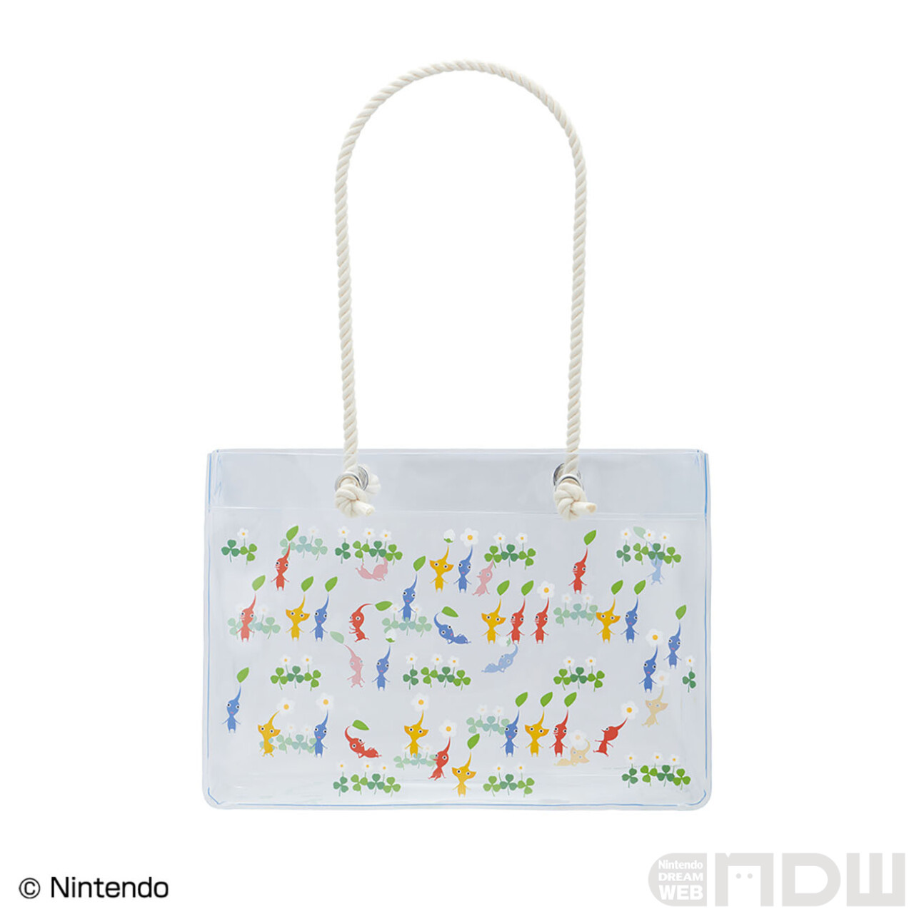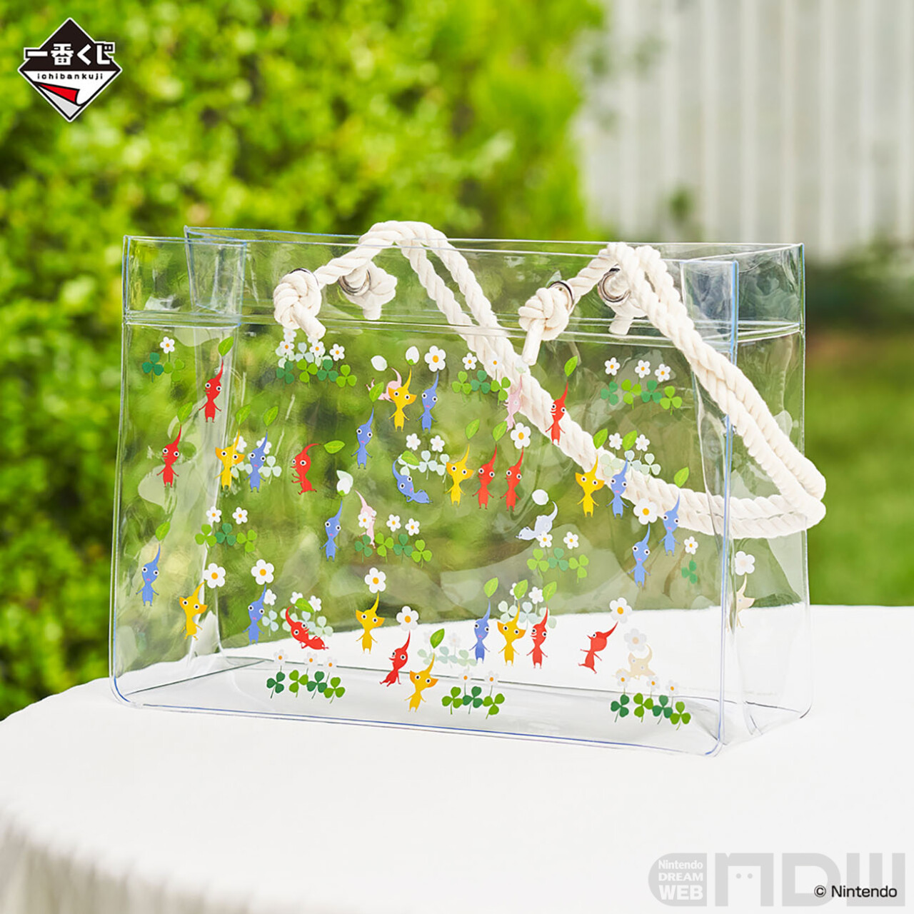 夏らしい透明ボディが涼しげに感じられるクリア素材のバッグです。持ち手部分がロープになっているのもポイントです☆ ピクミンたちが賑やかにデザインされたこちらのアイテム、ぜひ夏のお出かけのお供にお使いください!