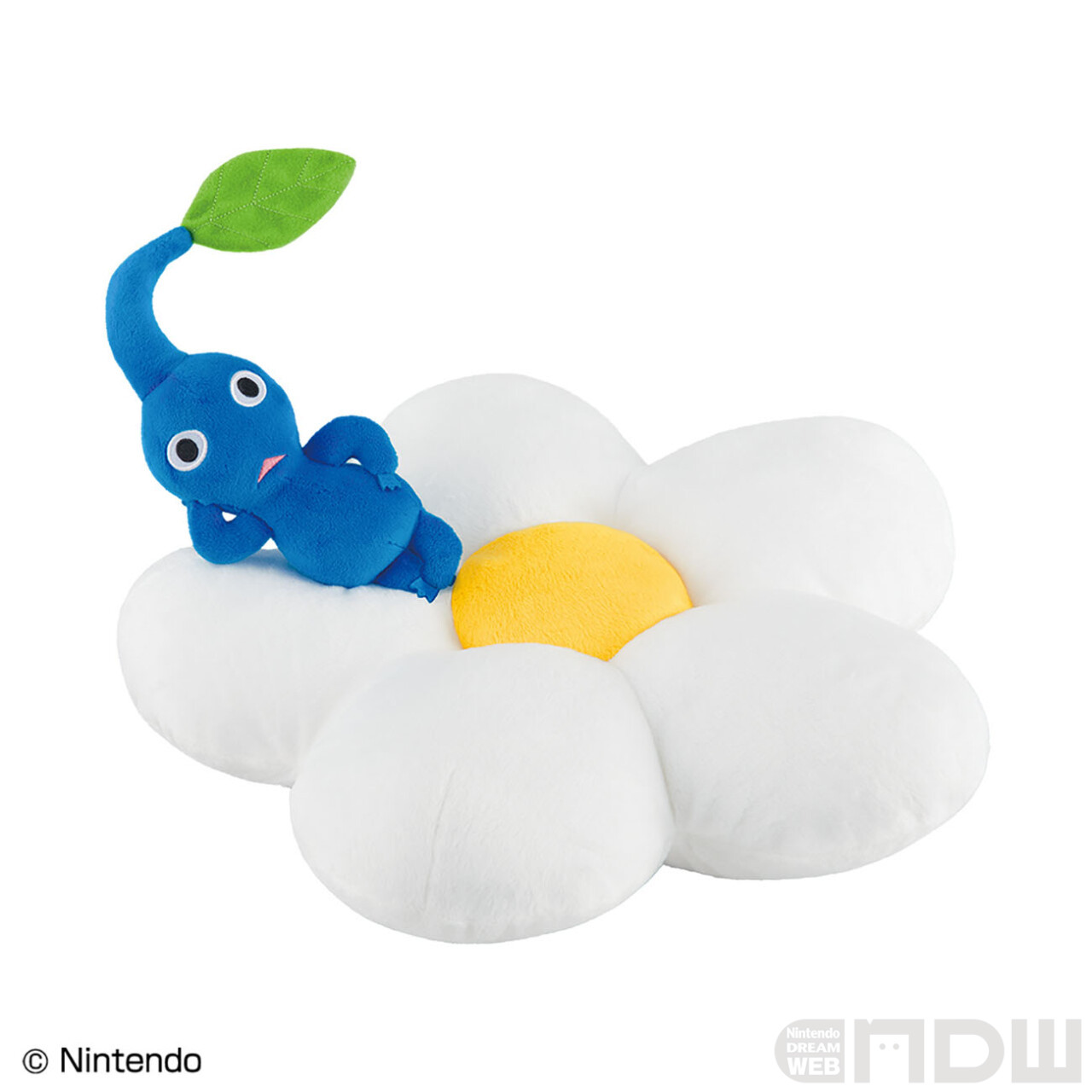 最後の1個を引くと手に入る! お花の上に、青ピクミンのぬいぐるみが寝そべっているクッションです。実用性はもちろん、ソファなどに飾ってもGOOD♪