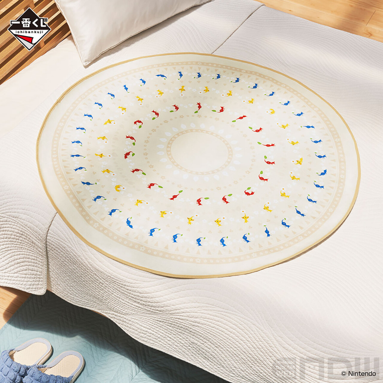 たくさんのピクミンがデザインされた、円型のタオルケットです。肌寒いときに肩や膝に載せて使うほか、ソファなどに掛けてインテリアとして飾るのもオススメです☆ せっせと歩くピクミンたちの中、たまに座ったり寝そべったりしているピクミンを探すのも楽しいデザインになっています♪