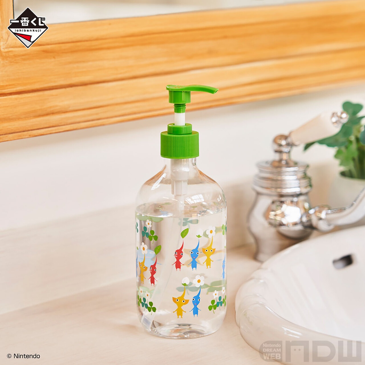クリア容器に、ぐるっとピクミンたちがデザインされたディスペンサーです。ピクミンと草花のカラフルな色合いが、洗面所やキッチンを彩ります☆