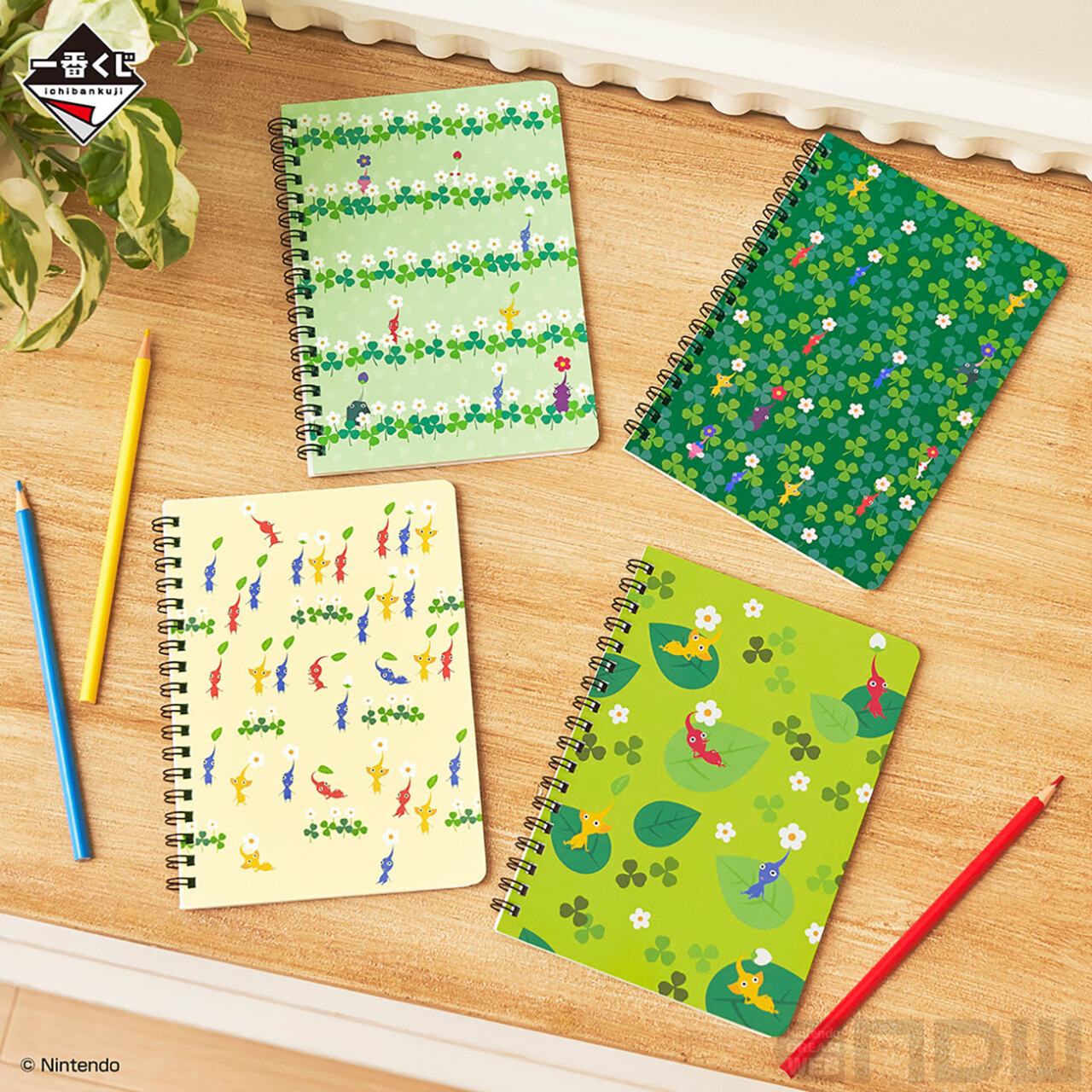 全種、表紙にたくさんのピクミンがデザインされたリングノートです。中面のデザインもそれぞれ異なっております。数種類集めて、用途によって使い分けても便利! カバンに入れて持ち歩きしやすいサイズ感なので、外出先でのちょっとしたメモなどにも大活躍!