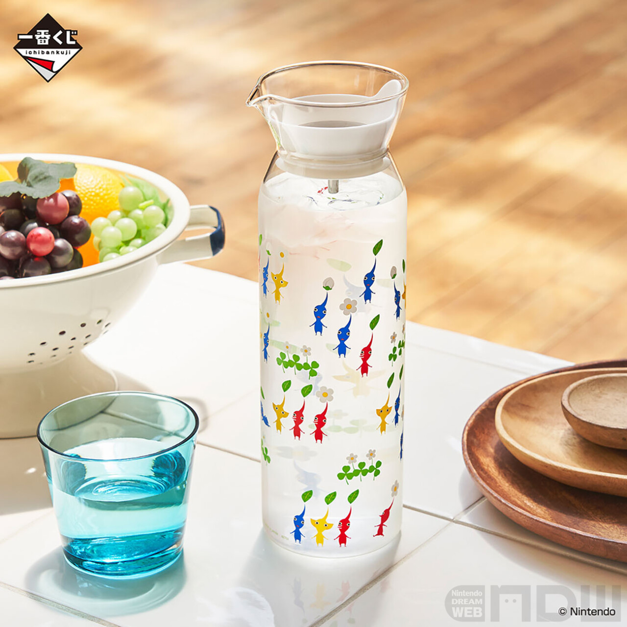 傾けるだけで蓋が浮いて注ぐことができる、便利なウォーターピッチャーです。冷蔵庫のドアポケットにも納まりやすいスリムな形状になっています。水やお茶を飲んで一息つきたいとき、のんびりしたピクミンたちのデザインに一層癒されるかも!?