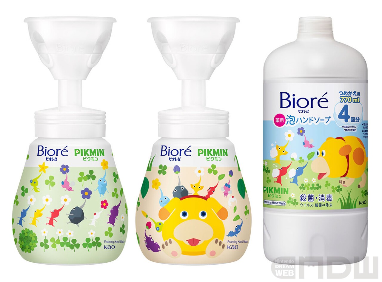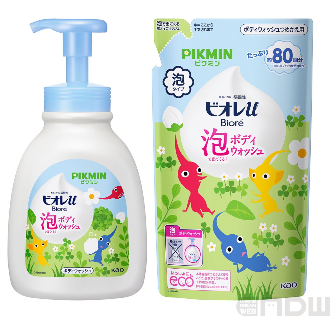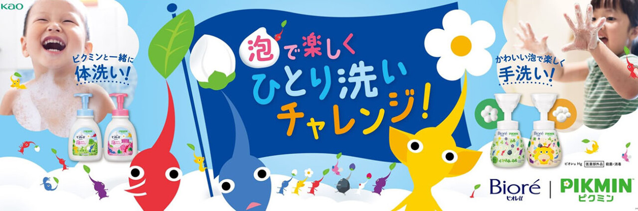 「ビオレu」のアイテムのうち、泡立て不要でそのまま洗える「泡で出てくるボディウォッシュ」と「泡スタンプハンドソープ」が、「ピクミン」たちのかわいらしいデザインとなって登場します。