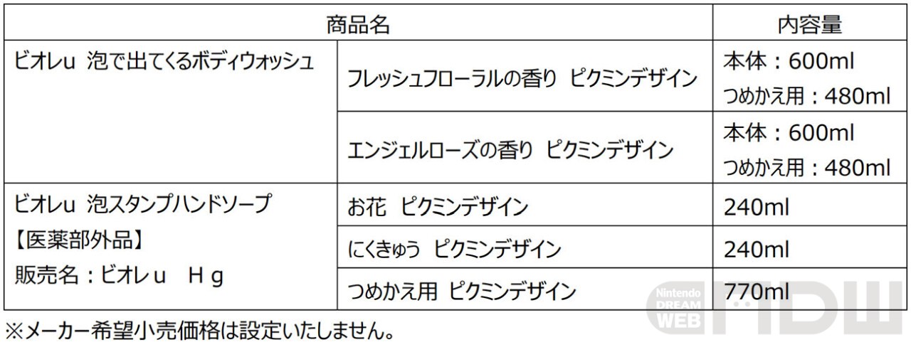 「泡で出てくるボディウォッシュ」では「ピクミン」たちが「ビオレu」の泡を運んでくれる様子を描いたデザインが、また、「泡スタンプハンドソープ」の<お花型>ではお花の姿になった「ピクミン」たちが、<にくきゅう型>では『ピクミン4』に登場する「オッチン」がデザインされた仕様になっています。2024年8月3日(土)より発売開始です。