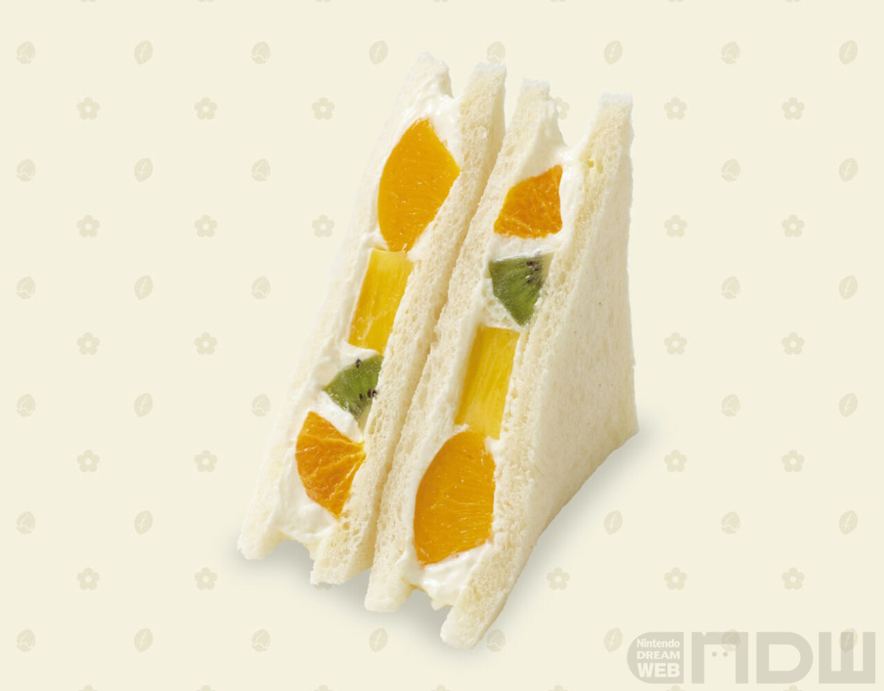 ゲーム内でピクミンたちが運ぶ果実をイメージしたサンドイッチ。「パイン」「キウイ」「みかん」「黄桃」の4種のフルーツを使用してホイップと組み合わせた、贅沢なフルーツサンドとなっています。