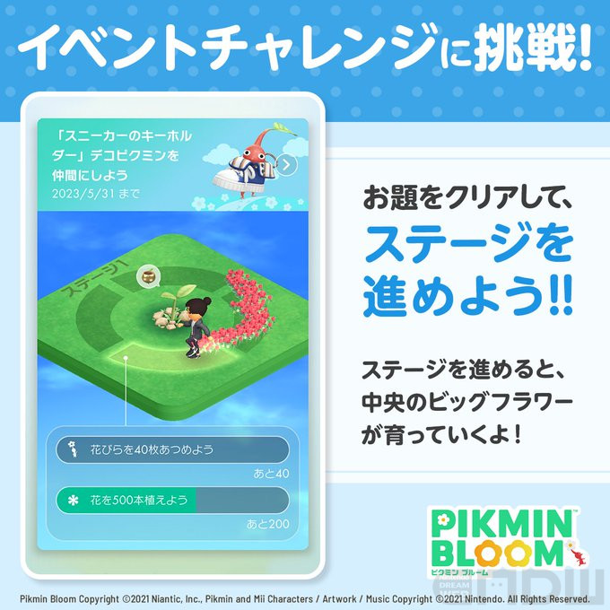 ピクミンと一緒に歩くのが楽しくなる、スマートフォン用アプリ『Pikmin Bloom』。5月8日より、「イベントチャレンジ」が始まっています。