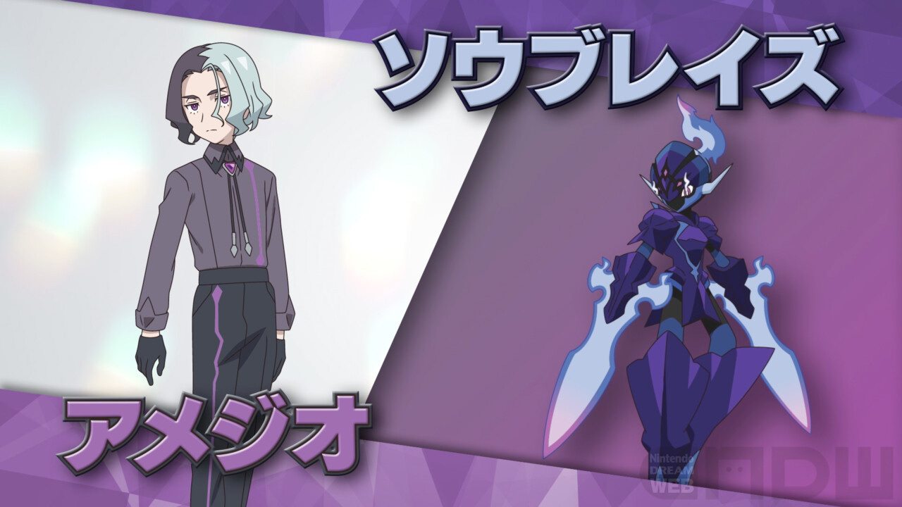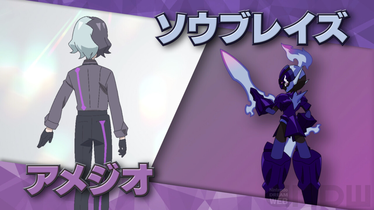 今回新たに発表になったのは、パルデア地方のポケモン、ソウブレイズがパートナーのアメジオ(CV:堀江瞬)と、アメジオが所属する組織・エクスプローラーズのメンバーであるジル(CV:田邊幸輔)とパートナーポケモンのサイドン、そしてコニア(CV:志田有彩)とパートナーポケモンのゴルダックです。