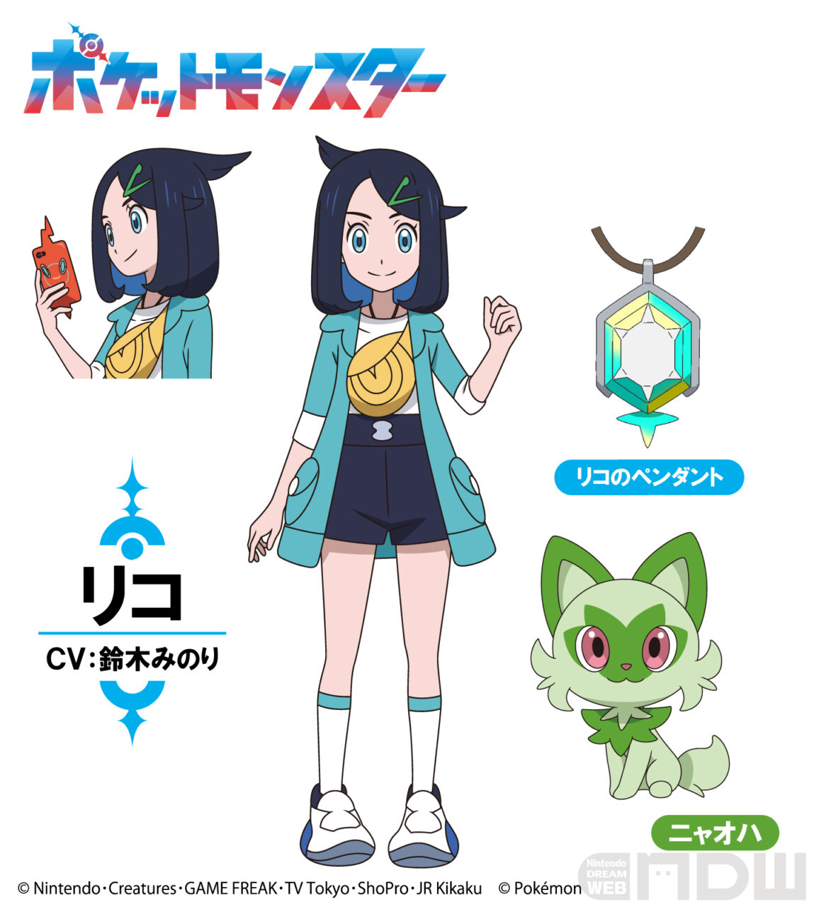【リコ】(CV:鈴木みのり)パルデア地方出身の少女。祖母から貰った「不思議なペンダント」がきっかけで冒険に旅立つことになる。